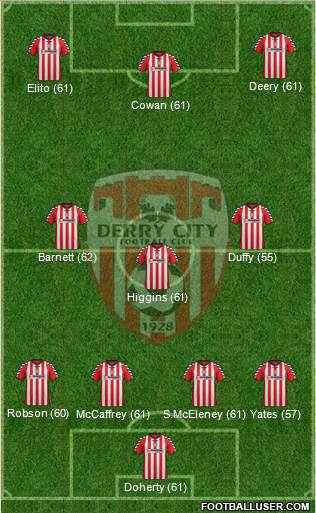Doherty (61) · McCaffrey (61) · S.McEleney (61) · Yates (57) · Robson (60) · Higgins (61) · Barnett (62) · Duffy (55) · Cowan (61) · Elito (61) · Deery (61)
