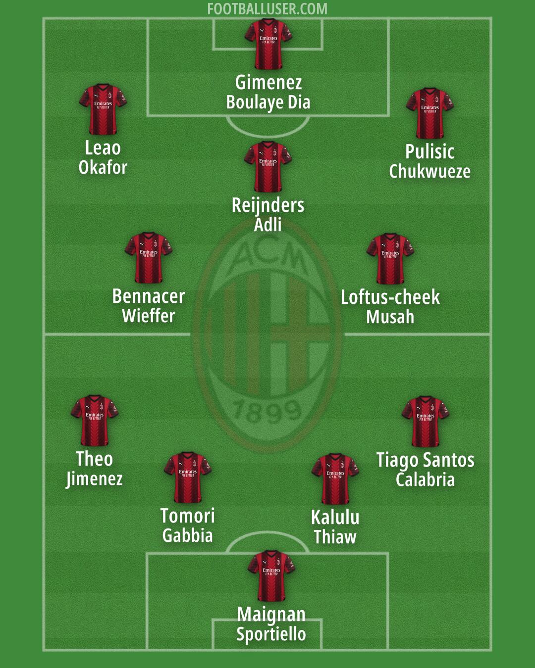 COSTACURTA · NESTA · MALDINI · KALADSI · PIRLO · GATTUSO · SEEDORF · RUI COSTA · INZAGUI · SCHEVCHENKO · DIDA