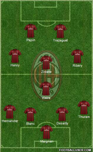 TASSOTI · COSTACURTA · BARESI · MALDINI · RIJKAARD · ANCELOTTI · DONADONI · COLOMBO · GULLIT · VAN BASTEN · GALLI
