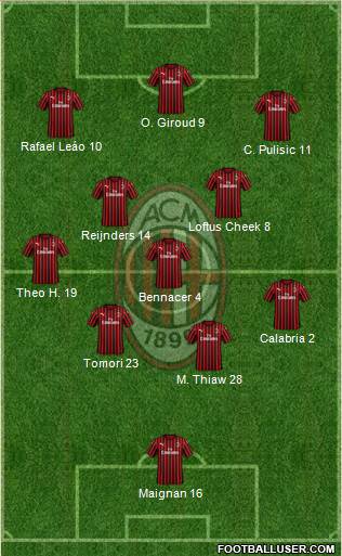Van Basten (Gren/Altafini) · Rivera (Kaka/Savicevic) · Maldini (Schnelinger/Trapattoni) · Nesta (C.Maldini/Costacurta) · Baresi (Desailly/Rosato) · Nordahl (Shevchenko/Prati) · Rijkaard (Pirlo/Albertini) · Gullit (Schiaffino/Seedorf) · Cafu (Tassotti/Anquiletti) · Liedohlm (Boban/Donadoni) · Rossi (Dida/Buffon/Cudicini)