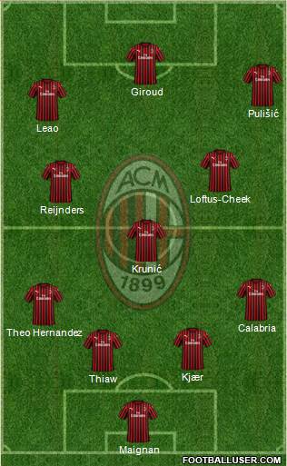 Maignan · Tomori · Gabbia · Calabria · Fofana · Loftus Ceek · Rejnders · Theo · Pulisic · Morata · Leao