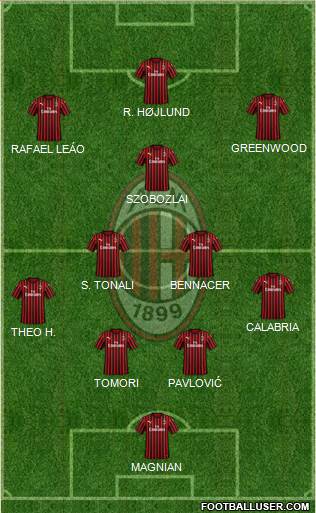 N. OKAFOR · A. BROJA · ZIRKZEE · SAELEMAEKERS · CHUKWUEZE · RAFAEL LEÁO · C. PULISIC · Y. MUSAH · A. RABIOT · REIJNDERS · LOFTUS CHEEK · BENNACER · WIEFFER · CALABRIA · JIMENEZ · P. KALULU · THEO H. · WAN BISSAKA · M. GABBIA · LACROIX · TOMORI · M. THIAW · SPORTIELLO · MAGNIAN