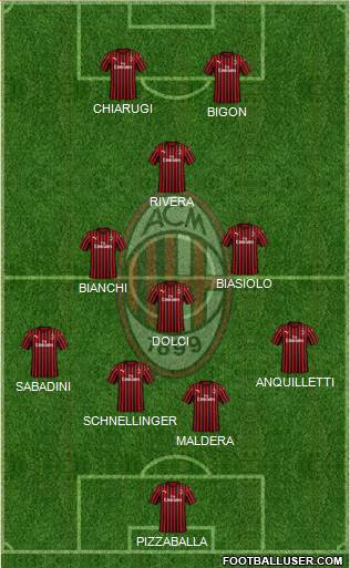 Van Basten · Inzaghi · Pirlo · Gullit · Rivera · Rijkaard · Tassotti · P. Maldini · F. Baresi · C. Maldini · Dida