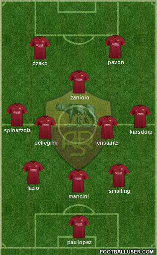 Pau López · Kumbulla · Ibañez · Mancini · Cristante · Veretout · Karsdorp · Spinazzola · Pellegrini · Mkhitaryan · Dzeko