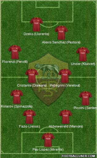13- López · 23- Mancini · 20- Fazio · 24- Florenzi · 11- Kolarov · 21- Veretout · 7- Pellegrini · 4- Cristante · 17- Ünder · 22- Zaniolo · 9- Džeko