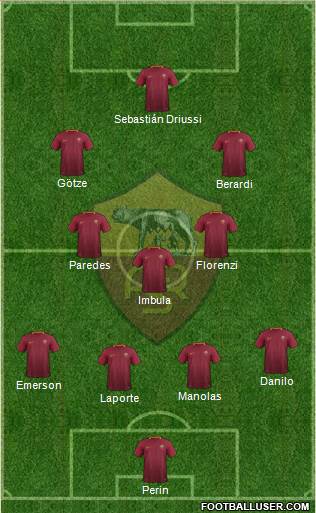 SZCZESNY · BENATIA · MARQUINHOS · KOLAROV · FLORENZI · NAINGGOLAN · STROOTMAN · EL SHAARAWY · PJANIC · SALAH · DZEKO