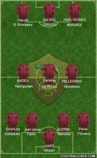 Skorupski · Fazio · Juan J. · Emerson P. · B. Peres · Gonalons · Pellegrini · Florenzi · Perotti · Under · Defrel