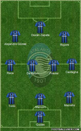 Gollini · Palomino · Djimsiti · Rafael Toloi · Freuler · de Roon · Castagne · Hateboer · Papu Gomez · Ilicic · D. Zapata
