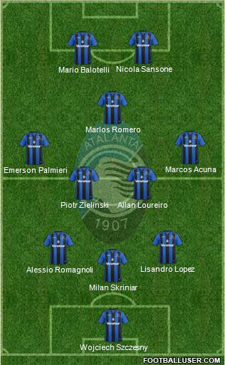 Gollini · Palomino · Toloi · Hateboer · Castagne · de Roon · Freuler · Pasalic · Papu Gomez · Ilicic · Zapata
