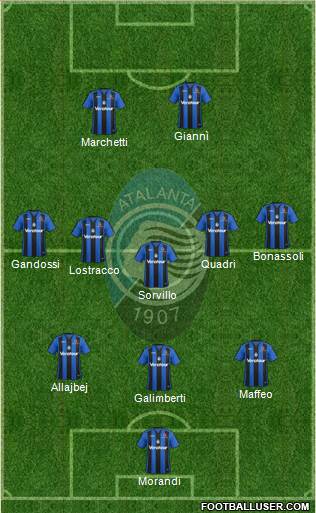 Benalouane (Cherubin) · Biava (Stendardo) · Paredes (Zappacosta · Bellini) · Del Grosso (Drame) · Migliaccio (Carmona) · Mkhitarian (Cigarini) · Estigarribia (Baselli · Dalessandro) · Moralez (Gomez · Susaeta · Spinazzola) · Gomez (Denis · Bianchi) · Martinez (Boakye)