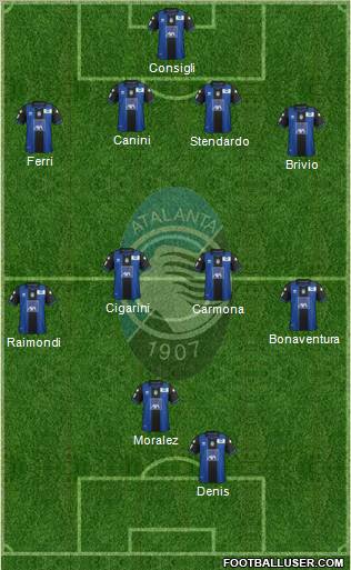 consigli /polito/frezzolini · manfredini/capelli · lucchini/stendardo · raimondi/matheu/ferri · peluso/brivio/bellini · cigarini/carmona/palma · biondini/cazzola/ radovanovic · bonaventura/pettinari/troisi · schelotto/ferreira pinto · moralez/scozzarella · denis/parra/marilungo/de luca