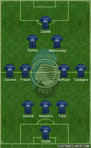95. Gollini · 2. Toloi · 17. Romero · 19.Djimsiti · 8. Gosens · 33. Hateboer · 11. Freuler · 15. De Roon · 32. Pessina · 72. Ilicic · 91. Zapata