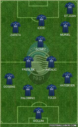 Gollini · Djimsiti · Palomino · Romero · Hateboer · de Roon · Freuler · Gosens · gomez · Ilicic · Zapata