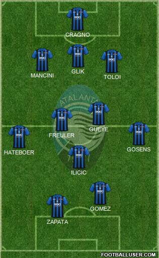 Gollini · Toloi · Djimsiti · Palomino · De roon · Freuler · Hateboer · Gosens · Ilicic · Gomez · Zapata