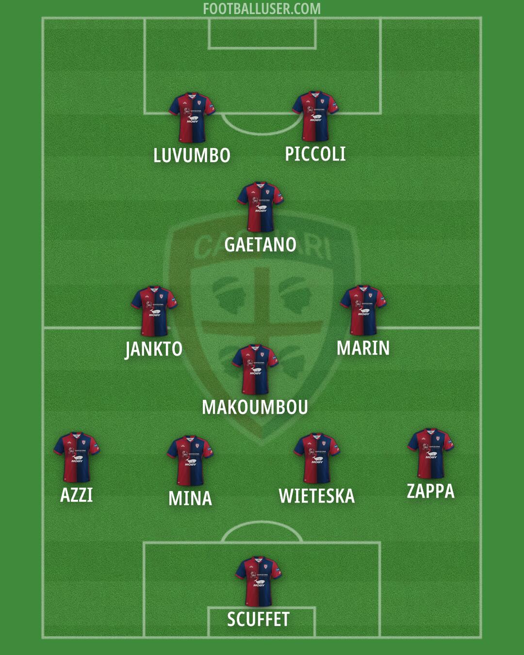 1 Agazzi (25 Avramov) · 28 Montoya (14 Pisano) · 24 Bartra (2 Camilleri) · 4 Fontas (15 Rossettini) · 3 Ariaudo (8 Avelar) · 5 D. Conti (C) (22 Elek) · 20 Ekdal (88 Duarte) · 6 S. Roberto (21 Dessena (Vc)) · 27 Sau (38 Nsue) · 19 E. Vargas (9 Bancé) · 7 Cossu (23 Soumahoro)