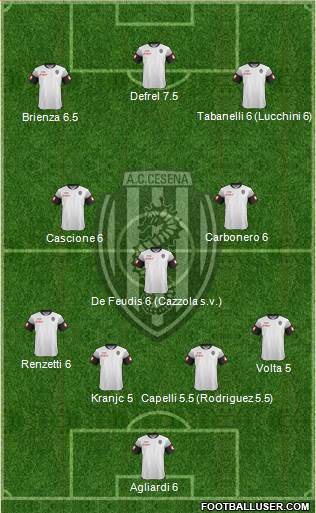 Agliardi 6 · 5 · Krajnc 5 · 5 · Lucchini 5 · Renzetti 6 · Volta 6 · Cascione 5 · 5 · De Feudis 6 · Dalmonte 6 (Djuric 5 · 5) · Tabanelli 5 · 5 (ZeEdoardo 5 · 5) · Brienza 5 · 5 · Defrel 6 · 5 (Rodriguez s.v)