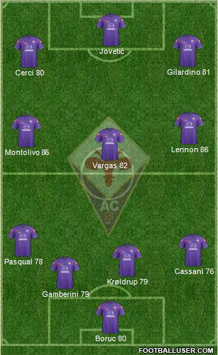 Gilardino · Jovetic · Vargas · Behrami · Kharja · Montolivo · Pasqual · De Silvestri · Nastasic · Gamberini · Boruc