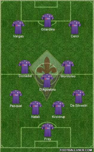 Gilardino · Cerci · Vargas · D'Agostino · Montolivo · Behrami · De Silvestri · Pasqual · Kroldrup · Gamberini · Boruc