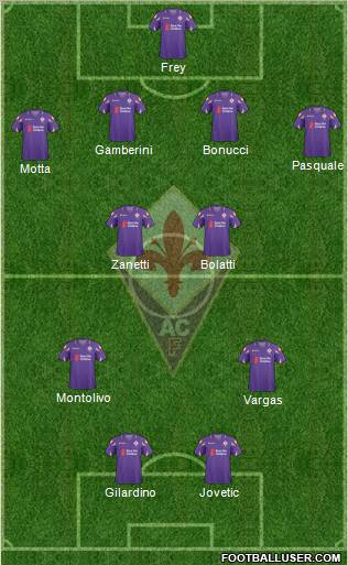 Frey · Pasquale · Felipe · Gamberini · De Silvestri · D'Agostino · Bolatti · Montolivo · Vargas · Thiago Neves · Gilardino