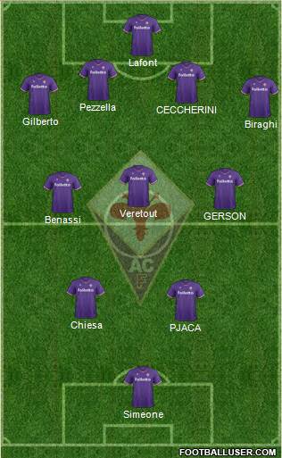 Lafont · Pezzella · Milenkovic · Hugo · Gerson · Veretout · Laurini · Biraghi · Chiesa · Pjaca · Simeone