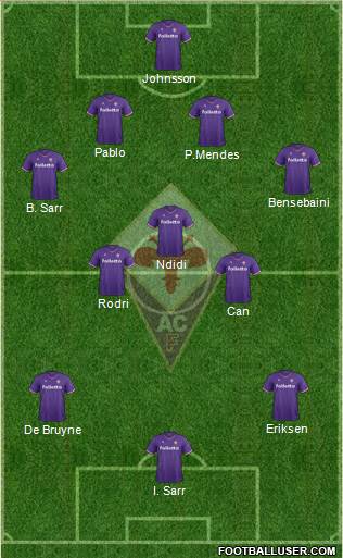 Lafont · Biraghi · Victor Hugo · Pezzella · Milenkovic · Norgaard · Gerson · Benassi · Eysseric · Chiesa · Simeone