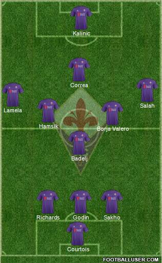 Tatarusanu · Rodríguez · Astori · Oliveira · Tomovic · Vecino · Badelj · Bernardeschi · Chiesa · Valero · Kalinic