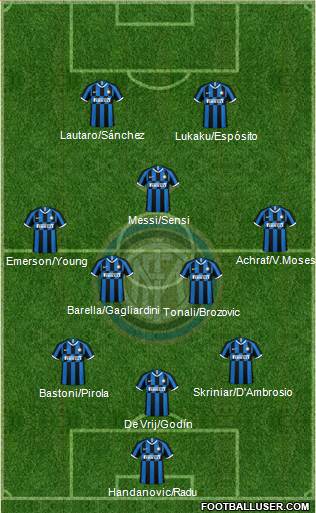 Handanovic · Bastoni · De Vrij · Skriniar · Brozovic · Eriksen · Barella · Perisic · Hakimi · Lautaro · Lukaku