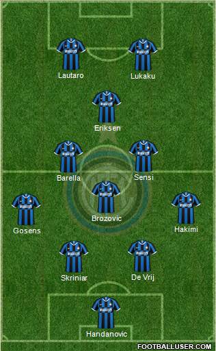 Handanovic · Godin · Skriniar · de Vrij · Tonali · Nainggolan · Barella · Eriksen · Perisic · Martinez · Lukaku