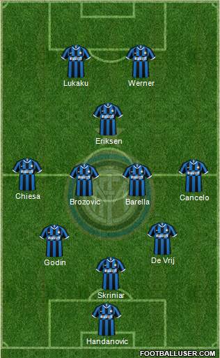 1. Handanovic · 11. Kolarov · 95. Bastoni · 33. D'Ambrosio · 77. Brozovic · 15. Young · 14. Perisic · 23. Barella · 24. Eriksen · 10. Martinez · 9. Lukaku