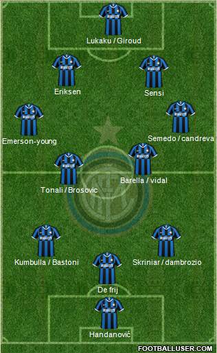 Handanovic · Skriniar · Bastoni · De Vrij · Young · Achraf · Brozovic · Barella · Eriksen · Lautaro · Lukaku