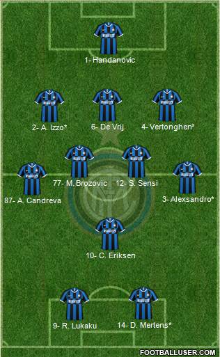 Handanovic · De Vrij · Bastoni · Godin · Hakimi · Kantè · Est Sx · Barella · Eriksen · Messi · Lukaku