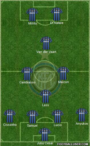 Julio · Samuel · Lucio · Zanetti · Maicon · Fernando · Cambiasso · Sneijder · Sanchez · Eto'o · Pazzini