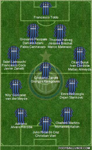 Julio Cesar · Lucio · Samuel · Chivu · Maicon · Zanetti · Motta · Sneijder · Stankovic · Eto'o · Milito