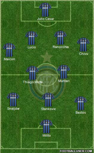Cesar · Lucio · Samuel · Maicon · Nagatomo · Zanetti · Thiago Motta · Coutinho/Sneijder/Nani · Etoo · Pazzini