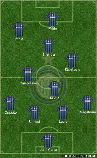 Castelazzi · Samuel · Lucio · Fucile · Cordoba · Stankovic · Obi · Cambiasso · Coutinho · Milito · Castaignos
