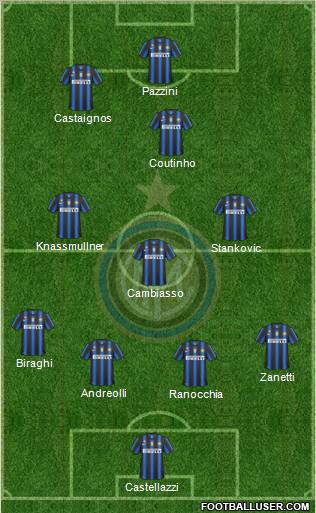 Julio Cesar · Wálter Samuel · Lucio · Javier Zanetti · Maicon · Esteban Cambiasso · Dejan Stankovic · Wesley Sneijder · Thiago Motta · Samuel Etoo · Diego Milito