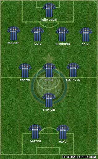 Julio Cesar · Zanneti · Chivu · Maicon · Motta · Stanković · Modrić · Nuri Sahin · Snejider · Etoo · Pazzini