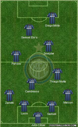 César · Lucio · Chivu · Zanetti · Maicon · Cambiasso · Muntari · stankovic · Sneijder · Eto'o · Milito