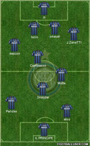 1. César · 4. Zanetti · 2. Maicon · 5. Lúcio(C) · 6. Materazzi · 3. Cambiasso · 15. Motta · 8. Sneijder · 45. Muntari · 9. Milito · 10. Eto'o
