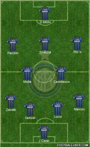 Julio Cesar · Materazzi · Lucio · Cordoba · Chivu · Cambiasso · Stankovic · Zanetti · Sneijder · Milito · Eto'o