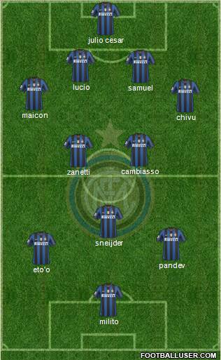 Julio César · Lucio · Samuel · J Zanetti · Santon · Cambiasso · Stankovic · Maicon · Sneijder · Eto'o · Milito