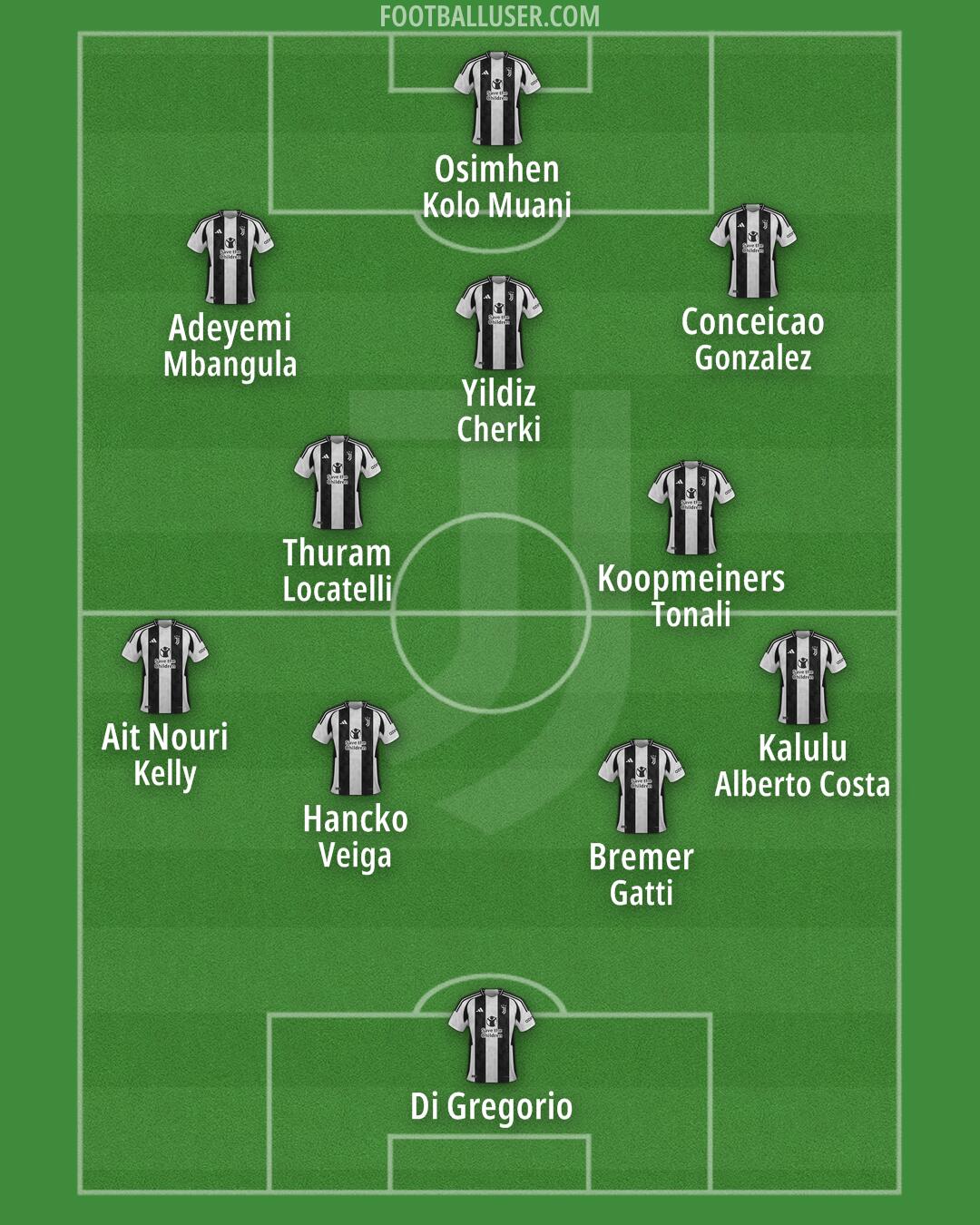 Michele Di Gregorio · Bremer · Pierre Kalulu · Federico Gatti · Manuel Locatelli · Khéphren Thuram · Andrea Cambiaso · Francisco Conceição · Jonathan David · Loïs Openda · Kenan Yıldız