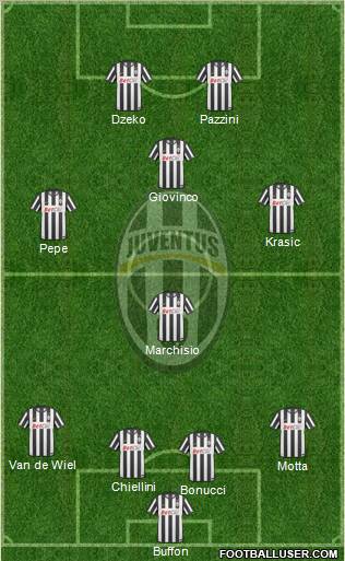 Buffon · Chiellini · Bonucci · Motta · Bale · Felipe Melo · Marchisio · Aquilani · Krasic · Bastos · Dzeko