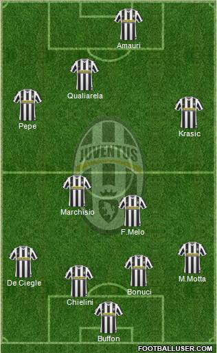 Buffon · Bonucci · Grosso · Chiellini · Motta · Sissoko · Melo · Marchisio · Krasic · Del Piero · Quagliarella