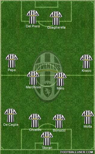 Storari · Bonucci · Chiellini · Salihamidzic · Grosso · Melo · Aquilani · Marchisio · Pepe · Quagliarella · Del Piero