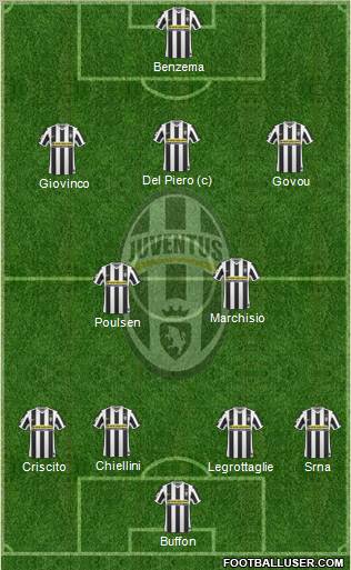 Buffon · Bonucci · Chiellini · De Ceglie · Motta · Marchisio · Melo · Pepe · Krasić · Diego · Amauri/Trez/Iaquinta