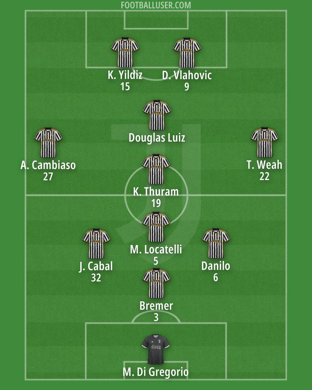 Di Gregorio (Perin) · Bremer (Veiga) · Hancko (Kelly) · Kalulu (Gatti) · Thuram (Atangana) · Tonali (Locatelli) · Tavares (De Cuyper) · Frimpong (Weah) · Sane (Conceiçao) · Lookman (Gabriel Mec) · Osimhen (Kolo Muani)