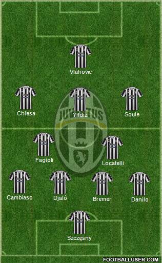 Di Gregorio (Perin) · Renato Veiga (Gatti) · Antonio Silva (Savona) · Kalulu (Alberto Costa) · Dorgu (Chilwell) · De Jong (Locatelli) · Thuram (McKennie) · Koopmeiners (Cherki) · Yildiz (Mbangula) · Conceiçao (Gonzalez) · Kolo Muani (Zirkzee) · Pinsoglio · Bremer · Weah · Cabal
