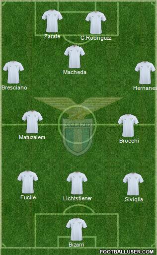 MUSLERA (GB) · DIAS ( Lib) · STENDARDO (DC) · BIAVA (DC) · POULSEN (MDf) · LICHTSTEINER (ALG) · HARGREAVES (ALD) · MATUZALEM (MR) · FOGGIA (SA) · ZARATE (SA) · ROCCHI (AC) [C]