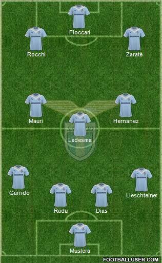 Fernando Muslera · Mobido Diakité · Ştefan Radu · Stephan Lichtsteiner · Javier Garrido · Cristian Ledesma · Stefano Mauri · Pasquale Foggia · Hernanes · Mauro Zárate · Sergio Floccari